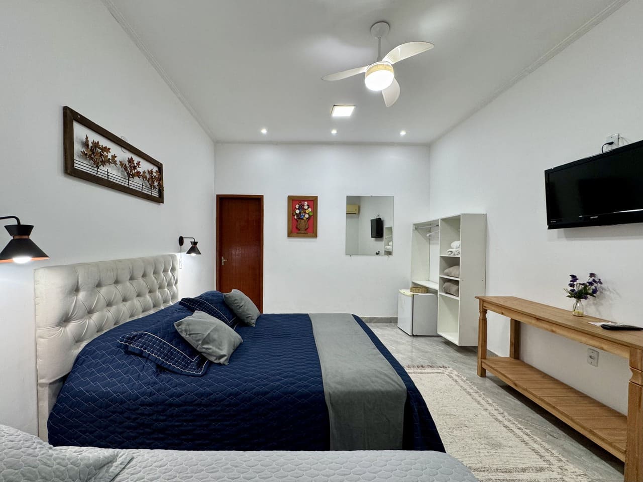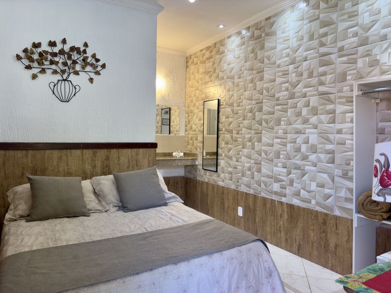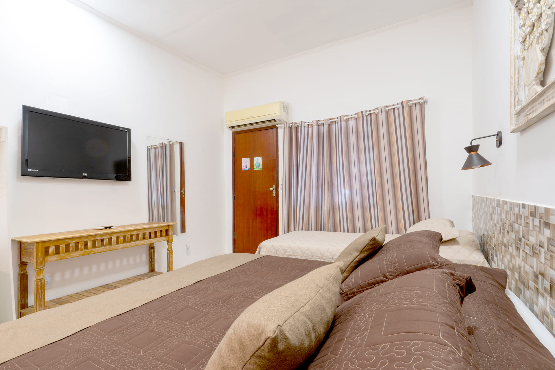 Nossas suítes e apartamentos foram projetados para oferecer conforto, praticidade e proximidade com as áreas de lazer. Todas contam com enxoval de cama e banho, ar-condicionado, frigobar, Wi-Fi e TV a cabo.