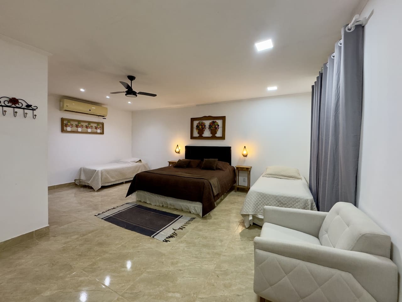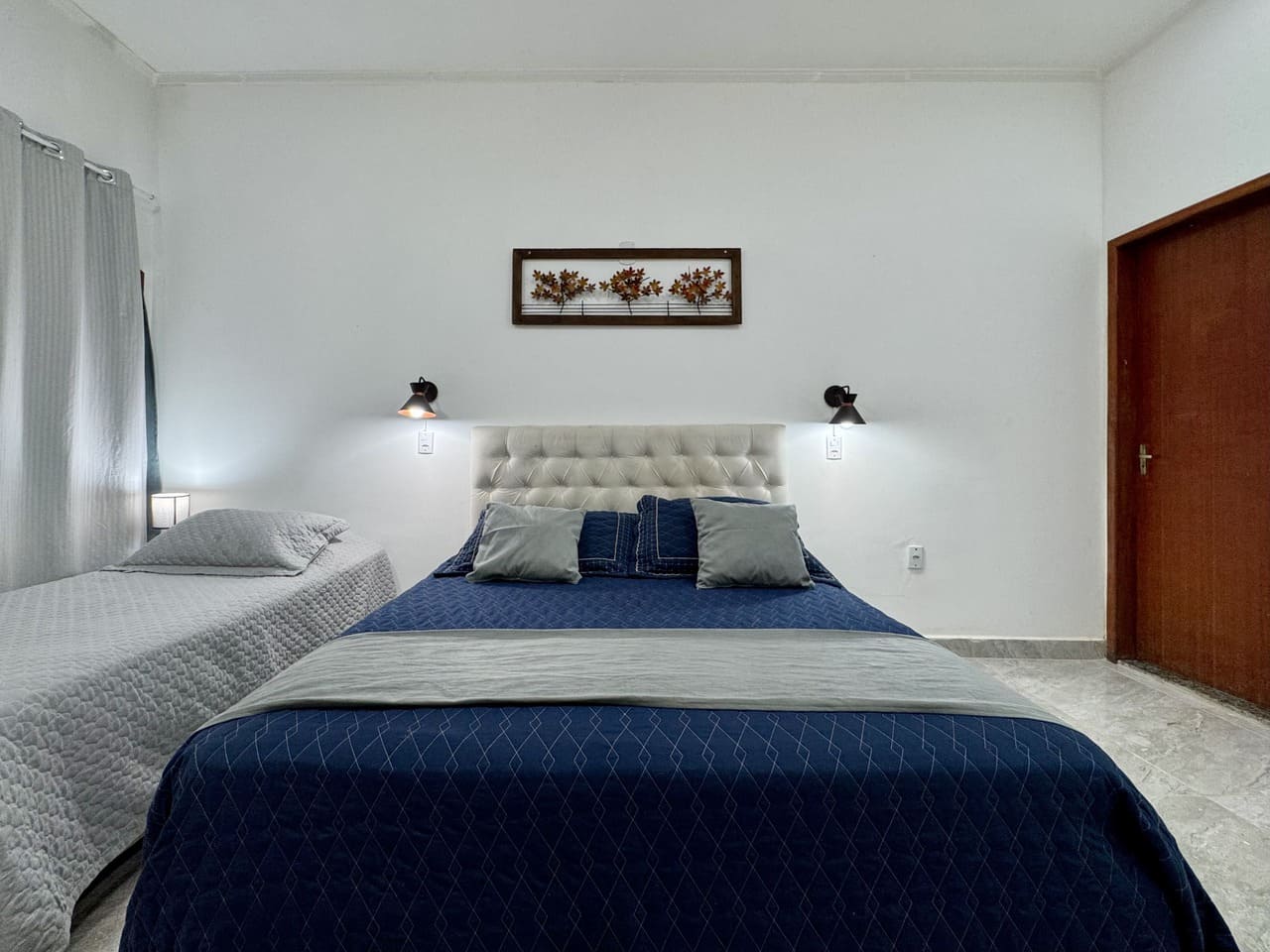 Com 1 cama de casal e 1 de solteiro, é ideal para pequenos grupos ou famílias.